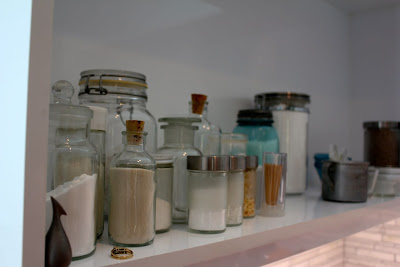 If our kitchen has a decorating theme, it's a fusion of the beauty of food with the sciency feel of a laboratory (because what is cooking but gastronomical chemistry?) The open shelves are there in part to showcase ingredients.